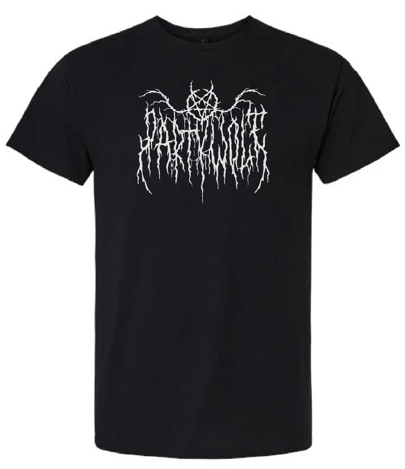- Unleash the beast in true underground fashion. The Corpse Script Tee features the Party Wolf logo reimagined in raw black metal-style lettering—jagged, chaotic, and unapologetically loud. Dripping with attitude, this design howls from the shadows and pays homage to the grim aesthetic of extreme music scenes. Made for late nights, loud shows, and the wolves who run the streets